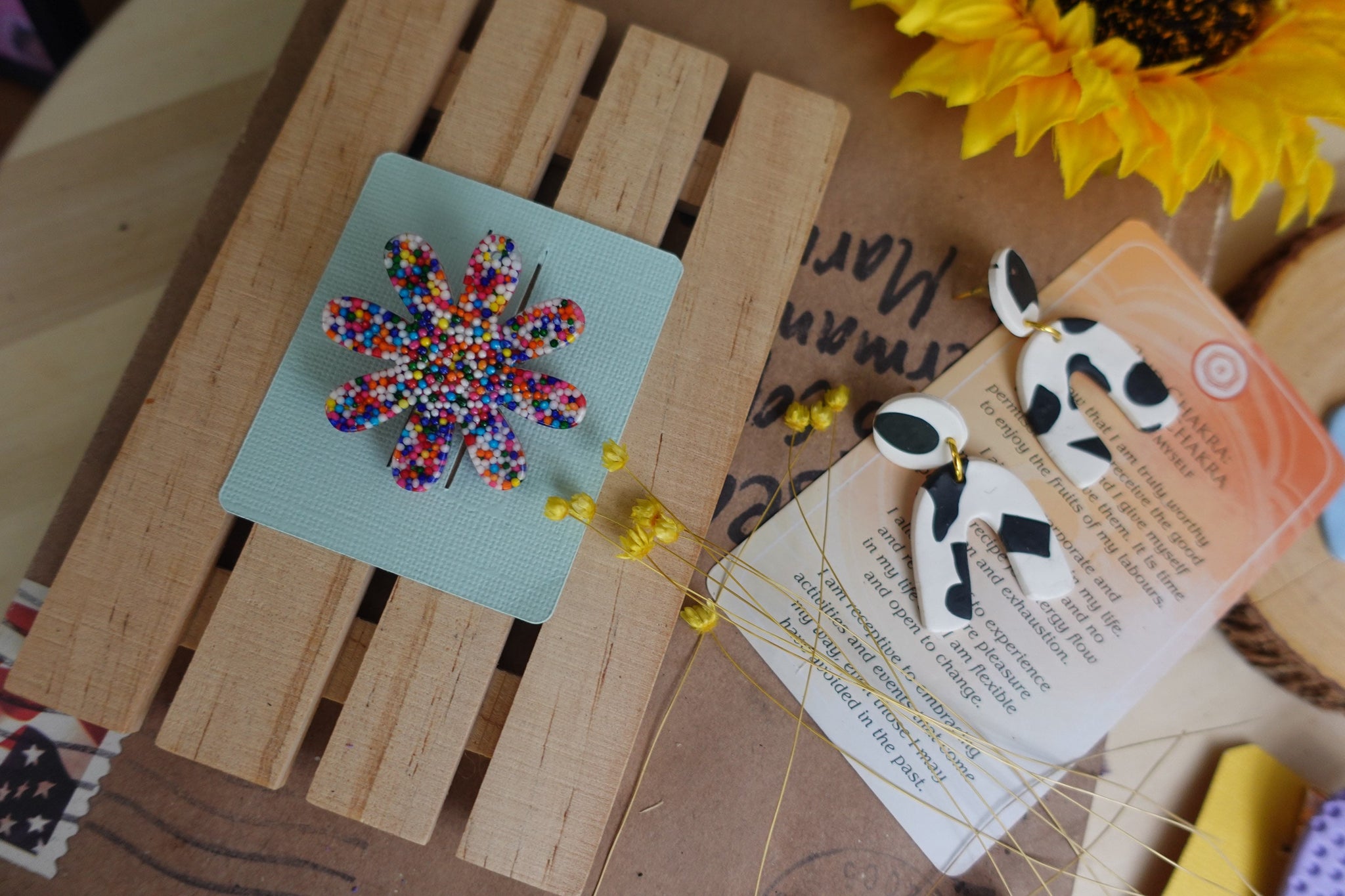 Fun resin flower daisy sprinkle pin!