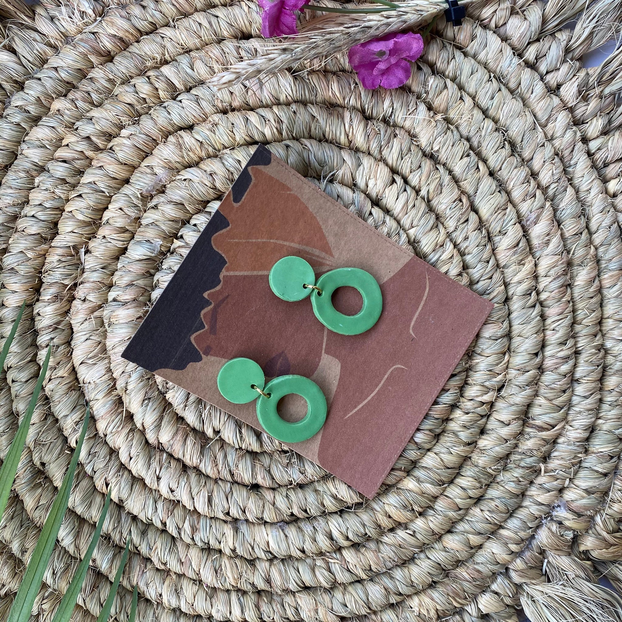 Olive green small dangle hoops