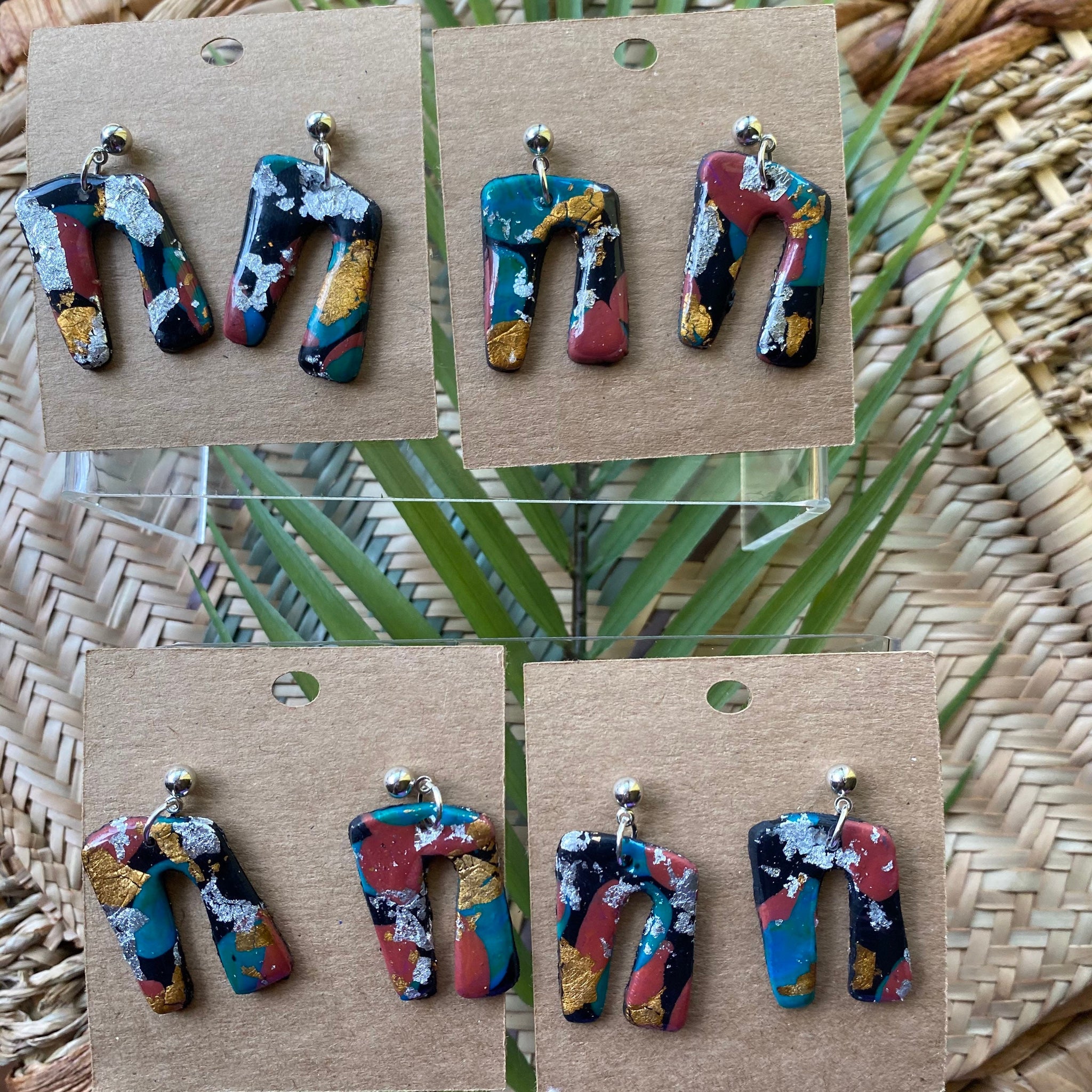 • Load image into Gallery viewer, Organic shape dangle terrazzo polymer clay earrings