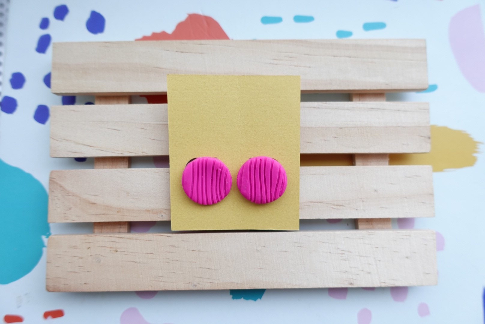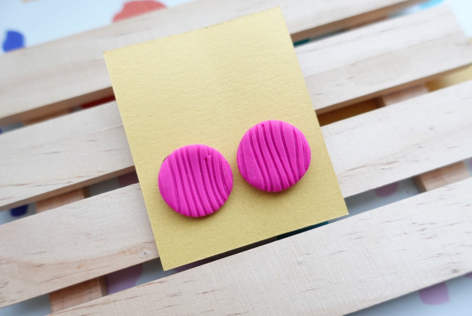 • Load image into Gallery viewer, Pink wood textured hot pink studs