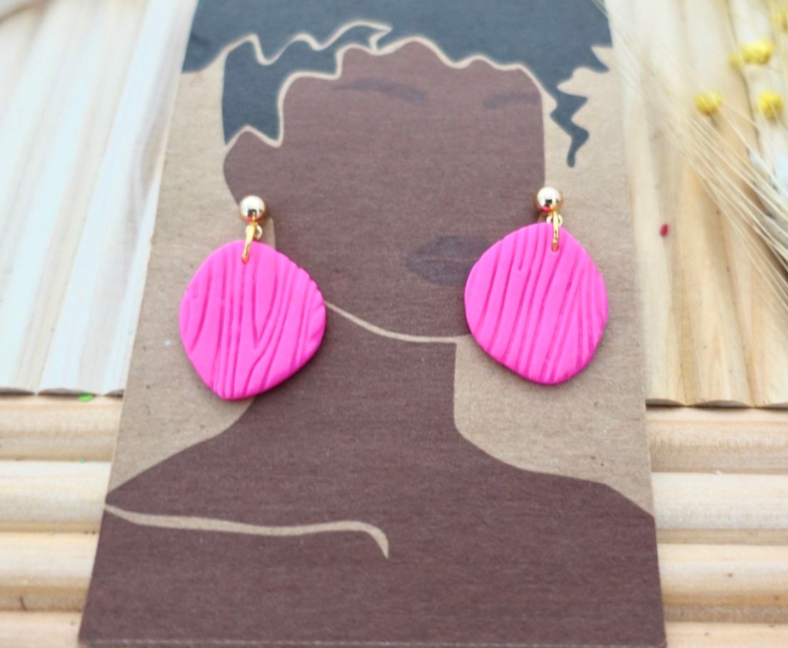 Pink wood textured organic circles | stone | handmade | polymer clay earrings