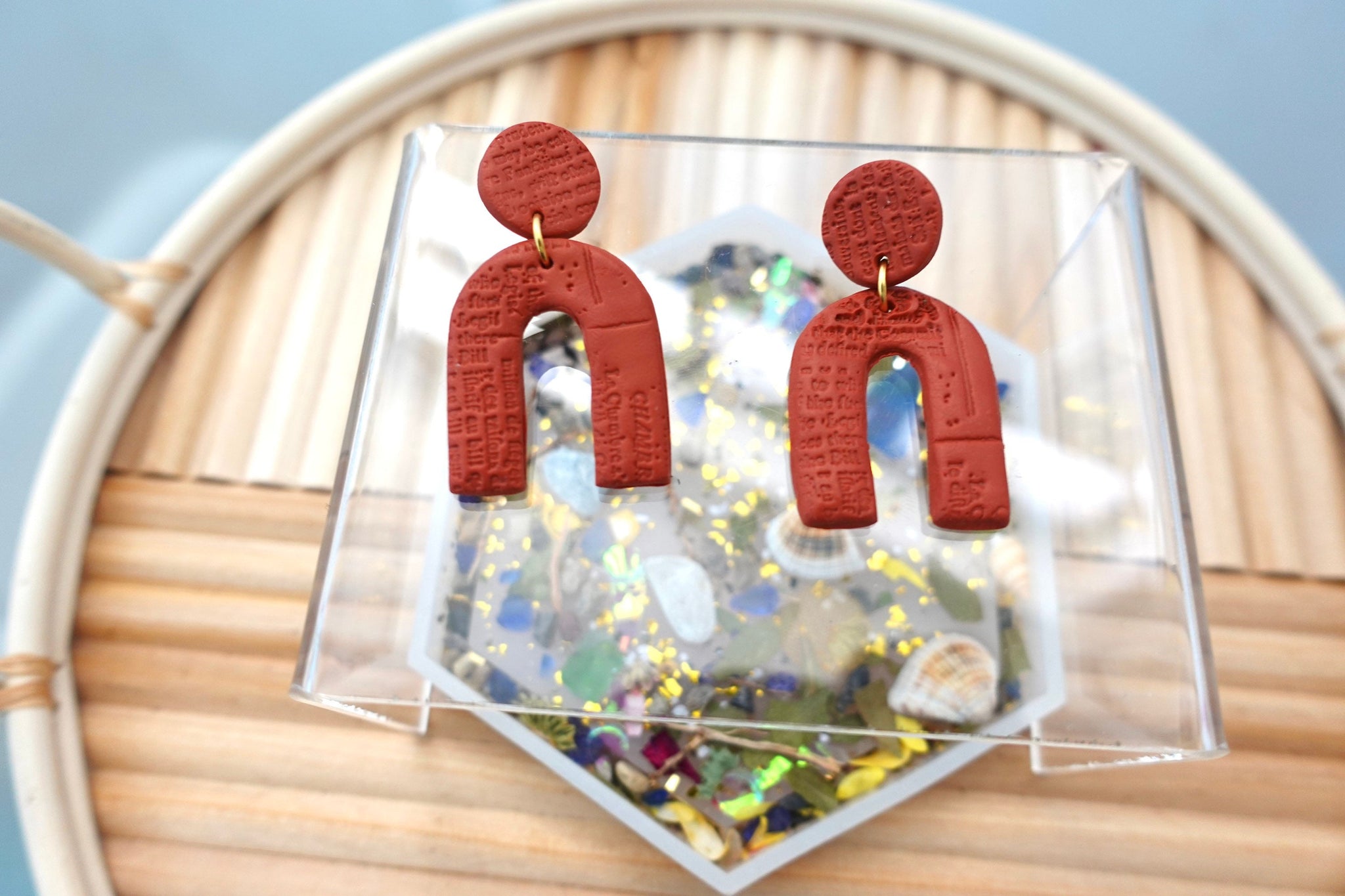 Texture terracotta arch dangle earrings | polymer clay | handmade |